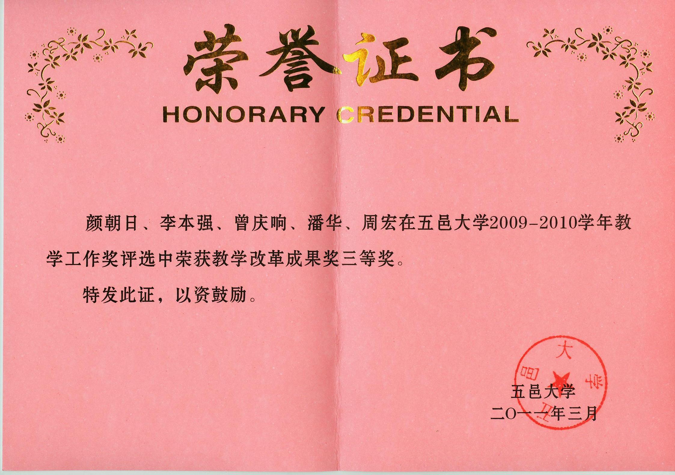 榮獲五邑大學2009-2010學年教學改革成果獎三等獎