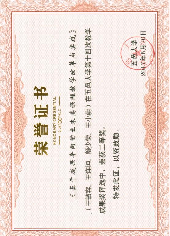 五邑大學第十四次教學成果獎二等獎——基于成果導向的土木類課程教學改革與實踐
