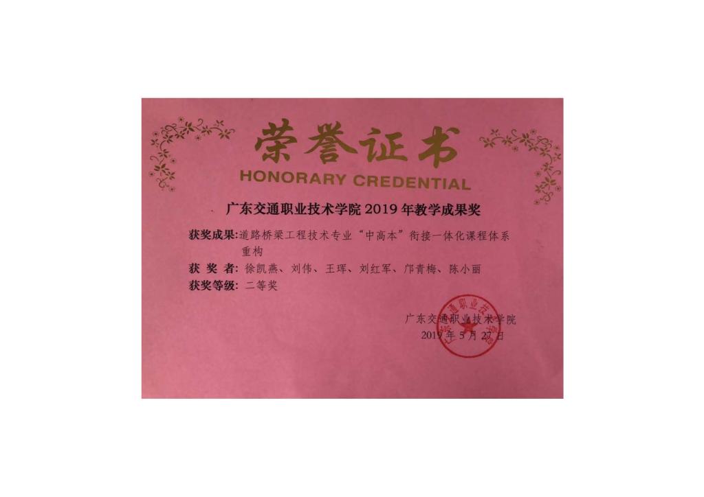 廣東交通職業技術學院2019年教學成果獎二等獎——道路橋梁工程技術專業“中高本”銜接一體化課程體系重構