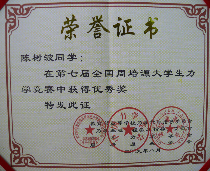 陳樹波-2009年第七屆全國周培源力學競賽優(yōu)秀獎