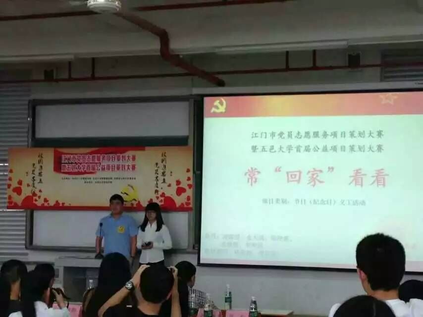 來自我院的“邑行有我”隊策劃的項目《常“回家”看看》,選用節日(紀念日)義工活動為主題,以東成社區退休老人和五邑大學退休教職工為服務對象,最后,本項目憑借完整結構、清晰思路的PPT展示以及順利的答辯以第二名的成績獲得本次公益項目策劃大賽的金獎,將會和有關市直機關單位共同實施。(土木建筑學院)