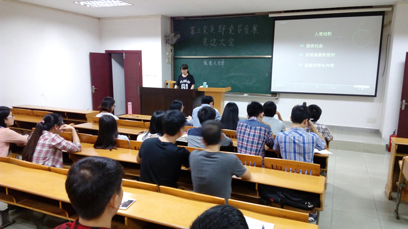 2016年11月14日晚,土木建筑學生第三黨支部在馬蘭芳教學樓303舉行了本學期的發展對象評選會議,參加本次會議的有本支部7名正式黨員,7名預備黨員,以及7名有意愿競選成為發展對象的積極分子。