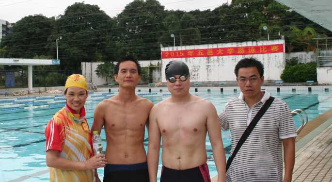 6月23日下午,我院教工參加了校2015年教工游泳比賽,在混合接力賽4*50米項目中,張文志、顏少榮、陳志城、周昊以3分30秒的成績獲得了第一名。