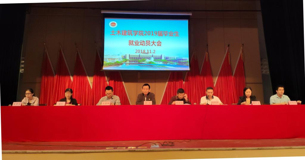 為引導學生樹立正確的擇業觀,進一步做好2019屆畢業生就業服務工作。11月2日下午,土木建筑學院在呂志和禮堂舉行了2019屆畢業生就業動員大會。學院在校領導班子成員、畢業班導師代表、輔導員,以及2019屆全體畢業生參加了本次大會。會議由黨總支副書記倪兵兵主持。