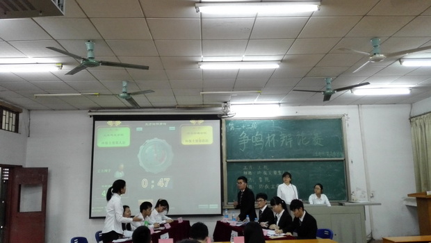 由語言培訓社主辦的第二十二屆爭鳴杯辯論賽于4月24日下午在南主樓212課室順利舉行。本次辯論賽的辯題是:環境主要靠人治還是法治。出席本次辯論賽的分別有擔任評委的葉穎文、張傲宇、李志彪以及土木建筑學院和經濟管理學院的辯論隊。