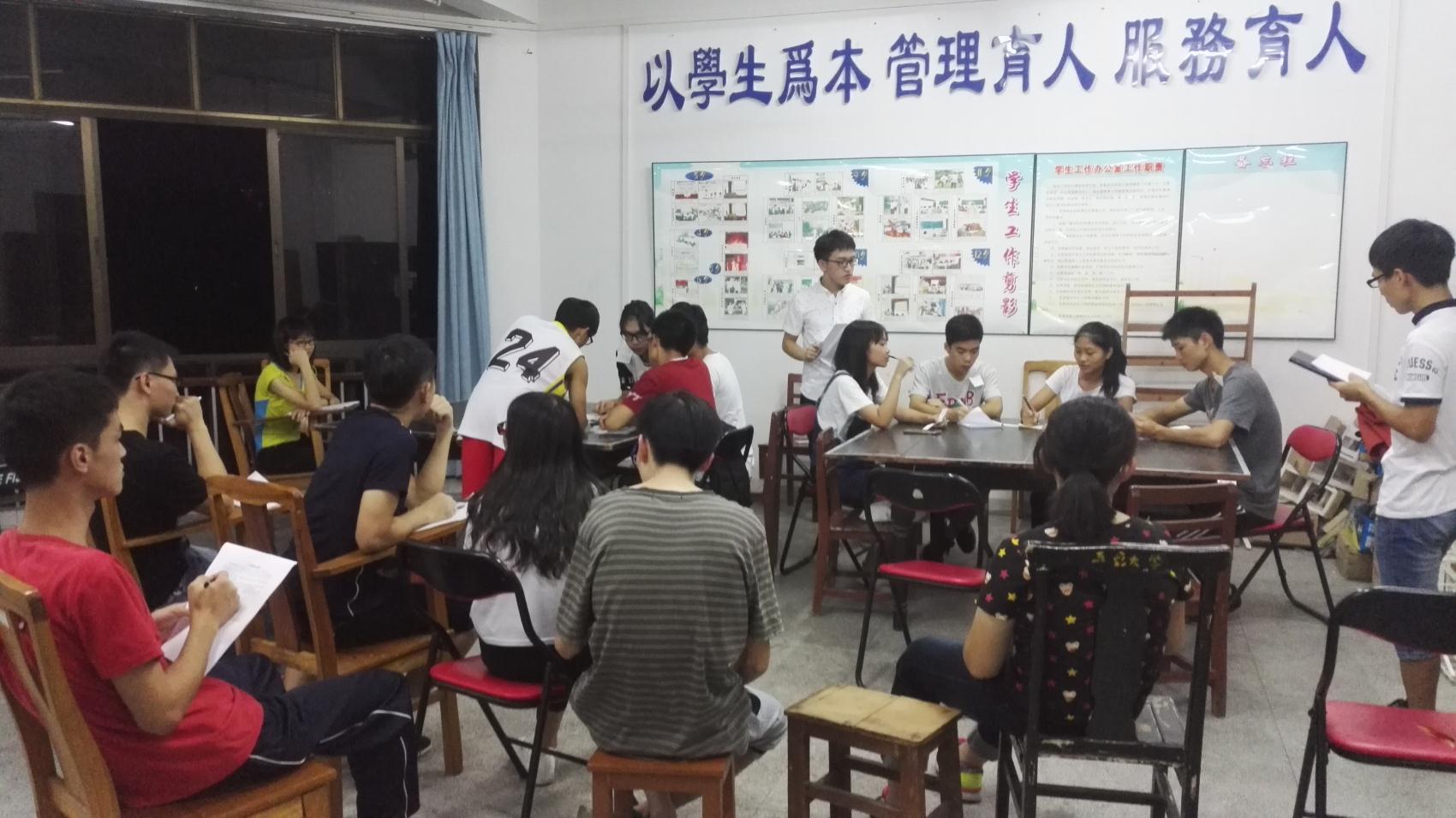 9月12日至14日,在團(tuán)總支負(fù)責(zé)人的帶領(lǐng)下,為期三天的一輪招新活動(dòng)于南主樓249有序的開(kāi)展。各部門根據(jù)自己部門的要求,對(duì)前來(lái)面試的同學(xué)進(jìn)行提問(wèn),從多方面了解新生的工作態(tài)度和對(duì)部門的了解,從而進(jìn)行篩選。17、18號(hào),團(tuán)總支分別對(duì)通過(guò)一輪面試的同學(xué)進(jìn)行二輪面試。各個(gè)部門根據(jù)部門特色,采取如情景劇演繹、新聞稿的編寫、無(wú)領(lǐng)導(dǎo)小組討論等形式進(jìn)行面試。部長(zhǎng)通過(guò)觀察新生在面試中的表現(xiàn),進(jìn)一步確定成員名單。兩輪面試后,團(tuán)總支新一輪委員名單基本確定。