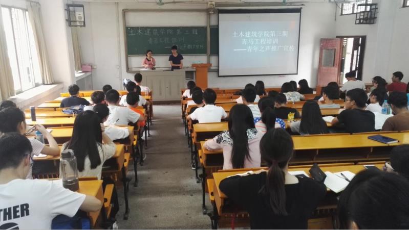 4月19日中午,土木建筑學院于南主樓202開展了第三期青馬工程培訓之青年之聲推廣宣傳活動。團總支書記夏夢雪老師、院三會及心協部長級以上的成員和各團支部宣傳委員出席了本次活動。土建學院團總支副書記鄧博文主講本次宣傳活動。
