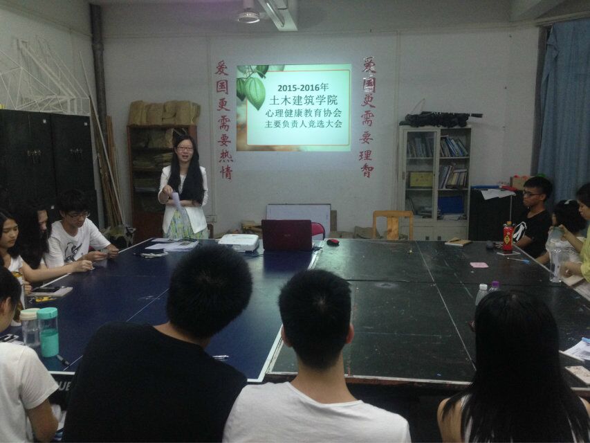 2016年6月7日晚9:40,土木建筑學院心理健康教育協(xié)會于會議室410進行主要負責人競選大會。本次會議參與人員有輔導員王穎馨老師與全體心協(xié)人員。會議由委員呂鵬飛主持。