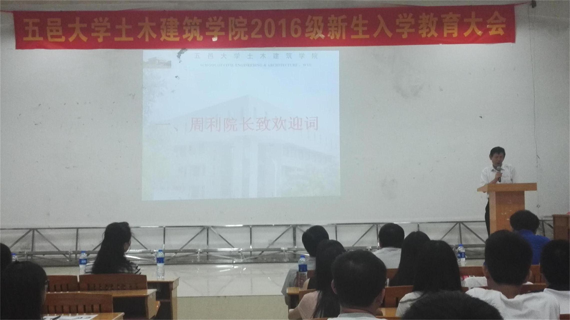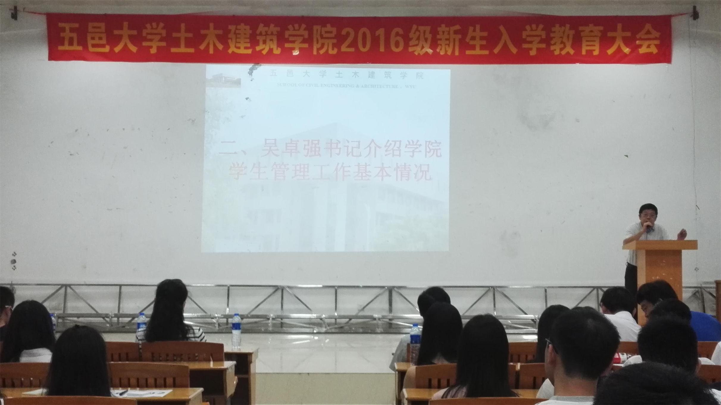 9月4日晚,土木建筑學院在活動中心報告廳舉行2016級新生入學教育大會。出席本次大會的有土木建筑學院周利院長、學院黨總支吳卓強書記、劉紅軍副院長、張萬勝副院長、輔導員楊燕麗老師、王穎馨老師、各班班導師以及我院全體大一新生。本次大會由楊燕麗老師主持。