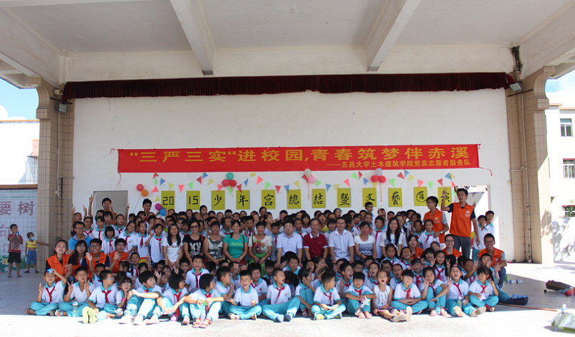 “三嚴三實”進校園,青春筑夢伴赤溪,2015年7月19日至7月31日,五邑大學土木建筑學院黨員志愿者服務隊在臺山赤溪鎮(zhèn)中心學校開展了為期兩周的支教活動圓滿落下帷幕。