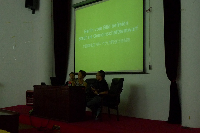 2013年9月27日下午4點(diǎn),應(yīng)我院左歡老師的邀請(qǐng),德國(guó)建筑師Anna Heilgemeir和RobertBurghardt在我校順德堂舉行了一場(chǎng)題為“非圖形化的柏林-作為共同設(shè)計(jì)的城市”的學(xué)術(shù)報(bào)告。建筑系各位專業(yè)老師及150名左右學(xué)生到場(chǎng)聆聽,并在提問環(huán)節(jié)與建筑師展開了良好的互動(dòng),就中國(guó)城市發(fā)展問題及建筑設(shè)計(jì)方法做了較深入的意見交流。同學(xué)們表示聽了本次報(bào)告在設(shè)計(jì)方法和設(shè)計(jì)思維等方面都有極好的啟發(fā),能更好的理解如何在城市與社會(huì)的大環(huán)境中展開建筑設(shè)計(jì)實(shí)踐。