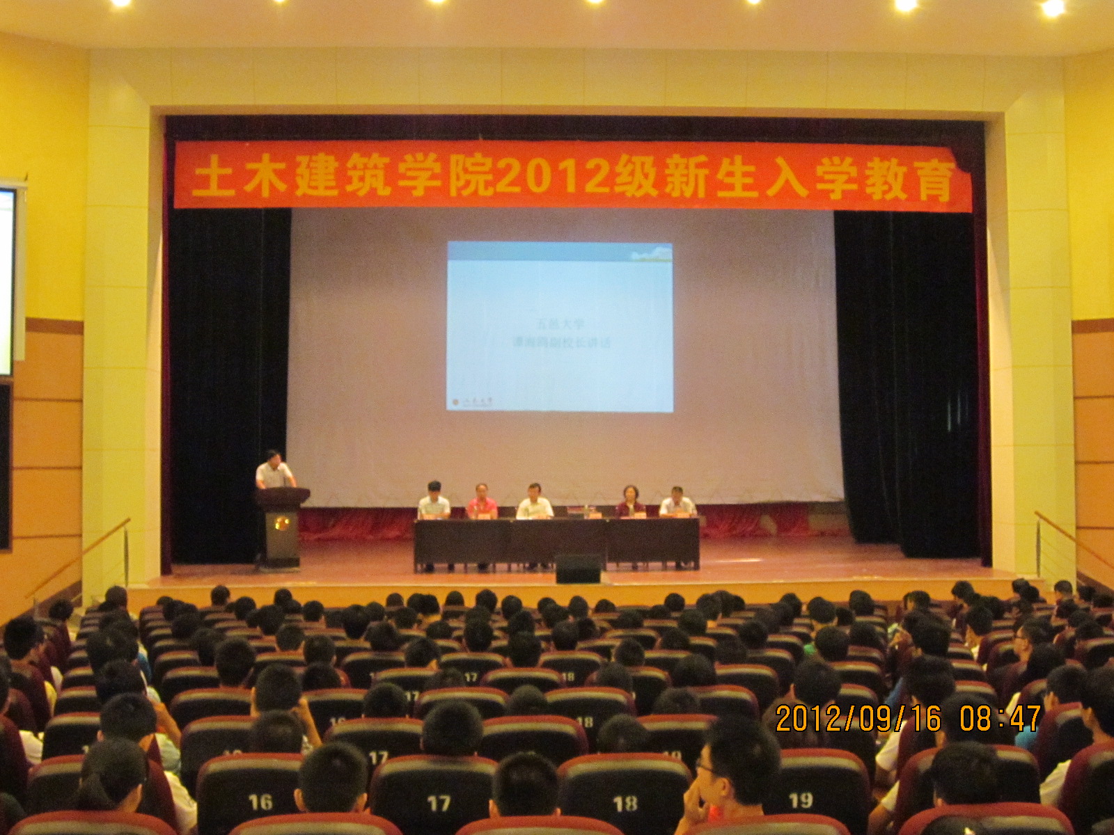2012年9月16日上午,土木建筑學(xué)院在呂志和禮堂召開了2012級(jí)新生入學(xué)教育大會(huì)。五邑大學(xué)譚海鷗副校長(zhǎng)、廣東金輝華集團(tuán)公司黨委張解矛書記、土木建筑學(xué)院全體教師及2012級(jí)新生參加了大會(huì)。會(huì)議由學(xué)院黨總支書記蘇俊華主持。