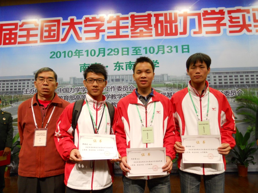 “首屆全國大學生基礎力學實驗競賽”于2010年10月29-31日在南京市東南大學舉行。我校土木建筑學院的廖奕發(fā)、莫欽福、馮甘霖三位同學組隊參賽,并榮獲三等獎。廣東省參加本次競賽有華南理工大學、中山大學、暨南大學和五邑大學,四所大學同獲競賽三等獎。