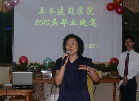 2010年6月28日晚,學院在江門樓二樓大廳為2010屆畢業生舉辦歡送晚宴。校黨委康少華副書記、吳森副校長親臨晚宴并致辭,他們為畢業生們送去了深深的祝福和深切的期盼,希望畢業生們都能夠在各自的工作崗位上發揮己長、事業有成,有困難的時候要能主動聯系母校的老師們,有空常“家”看看。基建處趙貴明處長、人事處鄧子勝處長、學生處盧東亮處長也應邀參加了晚宴。我院黨總支蘇俊華書記在晚宴上用歌聲唱出了“兒行千里母擔憂”的離別之情。優秀畢業生代表也在晚宴上和大家一起分享離別的感受,表達了對母校的感恩和祝福。師生們開懷暢飲,對酒當歌,互訴衷腸。晚宴在《一路順風》的歌聲中結束。