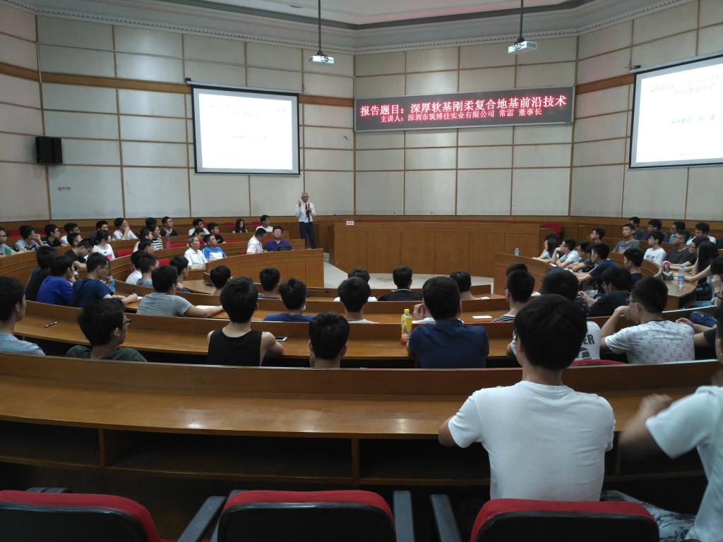 6月30日上午9時(shí),受土木建筑學(xué)院邀請(qǐng),深圳市筑博佳實(shí)業(yè)有限公司董事長(zhǎng)高級(jí)工程師常雷先生在十友樓二樓國(guó)際會(huì)議廳進(jìn)行了一場(chǎng)“深厚軟基剛?cè)釓?fù)合地基前沿技術(shù)”的講座。講座由土木建筑學(xué)院劉紅軍副院長(zhǎng)主持,周利院長(zhǎng)致歡迎感謝詞,土木建筑學(xué)院近200名師生及江門(mén)市相關(guān)企業(yè)的專(zhuān)業(yè)技術(shù)人員聆聽(tīng)了講座。