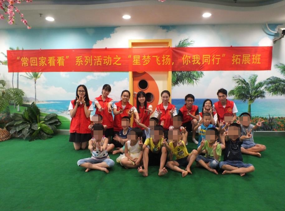 為迎接中國共產黨第十九次全國代表大會勝利召開,推進“兩學一做”學習教育常態化制度化,在五邑大學黨委的領導下,五邑大學土木建筑學院黨總支部堅持貫徹中國共產黨的“全心全意為人民服務”的宗旨,發揮弘揚“團結、互助、友愛、奉獻”的志愿精神,2017年7月24日至29日,五邑大學土木建筑學院黨員志愿者服務隊聯合江門市婦幼保健院兒童保健部兒童訓練中心、廣東建邦興業集團有限公司黨支部共同開展大型公益系列項目“常回家看看”之“星夢飛揚,你我同行”拓展班活動,關愛自閉癥兒童,用實際行動為星星孩子傳授知識,帶去歡樂。