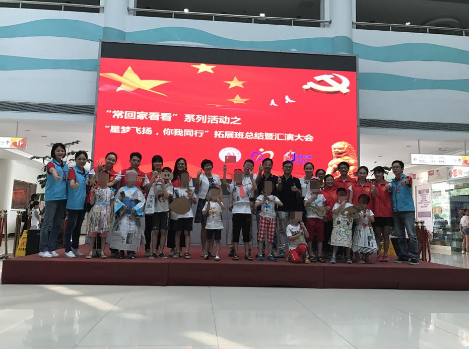通過6天精彩課程的訓練,7月29日上午在江門市婦幼保健院一樓大廳舉行了“常回家看看”系列活動之“星夢飛揚,你我同行”拓展班總結暨匯演大會。會上,江門市婦幼保健院黨委麥小珊副書記充分對本次活動給予了充分的肯定及志愿者們的辛勤付出表示感謝;五邑大學土木建筑學院黨總支吳卓強書記也表示本次活動意義深遠,讓大學生走進醫療機構受教育、作貢獻、長才干,塑造優秀品格;隨后,進行了文藝匯演,有志愿者與小朋友們共同完成的“環保時裝秀”,培養小朋友的環保意識,節約資源、愛護環境;有拓展班的小朋友和黨員志愿者共同表演的歌舞“青春修煉手冊”、“我愛我家”歌舞表演等,精彩紛呈現場觀眾掌聲不斷。最后,志愿者們還根據每一位小朋友的特點進行特別的頒獎環節,送上他們最真的祝福。6天的拓展班課程在依依不舍中落下帷幕。本次活動得到江門市婦幼保健院的充分肯定,黨員志愿者們的認真負責的辦事態度與無私奉獻的精神得到大家的認可,受到廣大家長的好評和星星小朋友的歡迎。