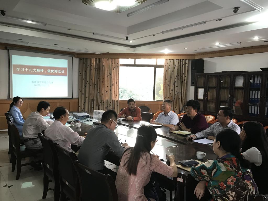 土木建筑學院黨總支吳卓強書記作了題為《黨的十九大與新時代》學習心得報告,分享了學習黨的十九大精神的感受,認為把習近平新時代中國特色社會主義思想寫入《中國共產黨章程》是黨在新時代的歷史方位上作出的必然選擇,學習貫穿黨的十九大精神,關鍵在“學懂、弄通、做實”上下功夫。我們廣大教師要加強自身理論學習,立足本職工作,把認同轉化落實到實際行動中來。隨后,土木建筑學院領導班子成員也一一結合自己的本職工作,暢談黨的十九大學習體會。土木建筑學院劉紅軍副院長、張萬勝副院長、王連坤副院長圍繞人才培養向周飚副校長匯報了學院研究生培養、科研、教學等各項工作的進展,在新一輪高水平工科大學建設中,土木建筑學院全體教職工將統一思想,為學校建設高水平理工科大學的過程中創造新業績。