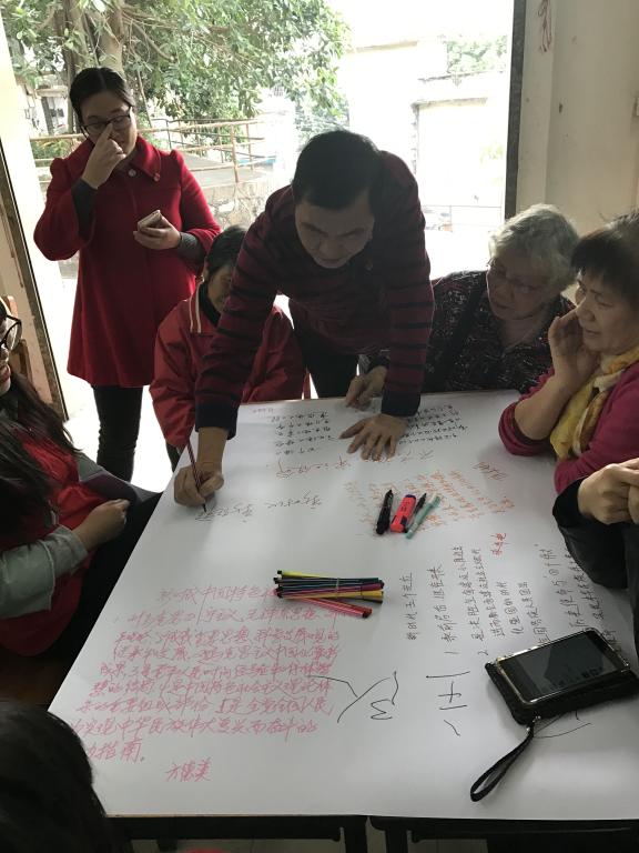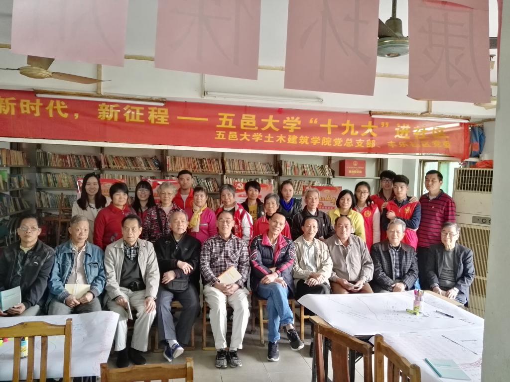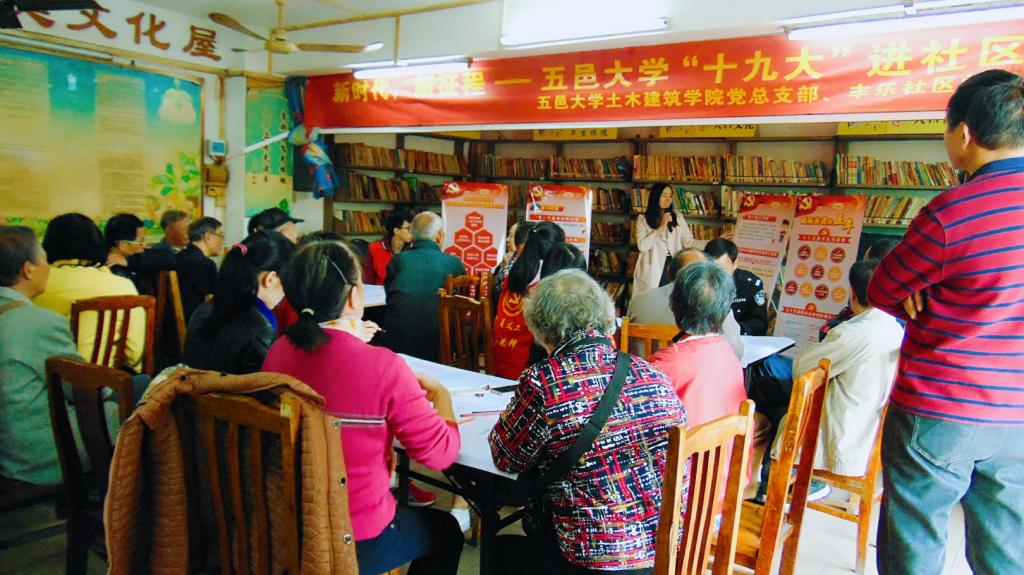 為深入學習宣傳貫徹黨的十九大精神,凝心聚力,2017年12月12日下午,由五邑大學主辦、土木建筑學院黨總支部楊燕麗老師及七位黨員代表組成的“十九大”學習小組,走進江門市蓬江區豐樂社區,與豐樂社區黨委聯合舉辦了“新時代,新征程——五邑大學十九大進社區”活動,豐樂社區二十多名退休黨員和群眾代表參加了本次活動。