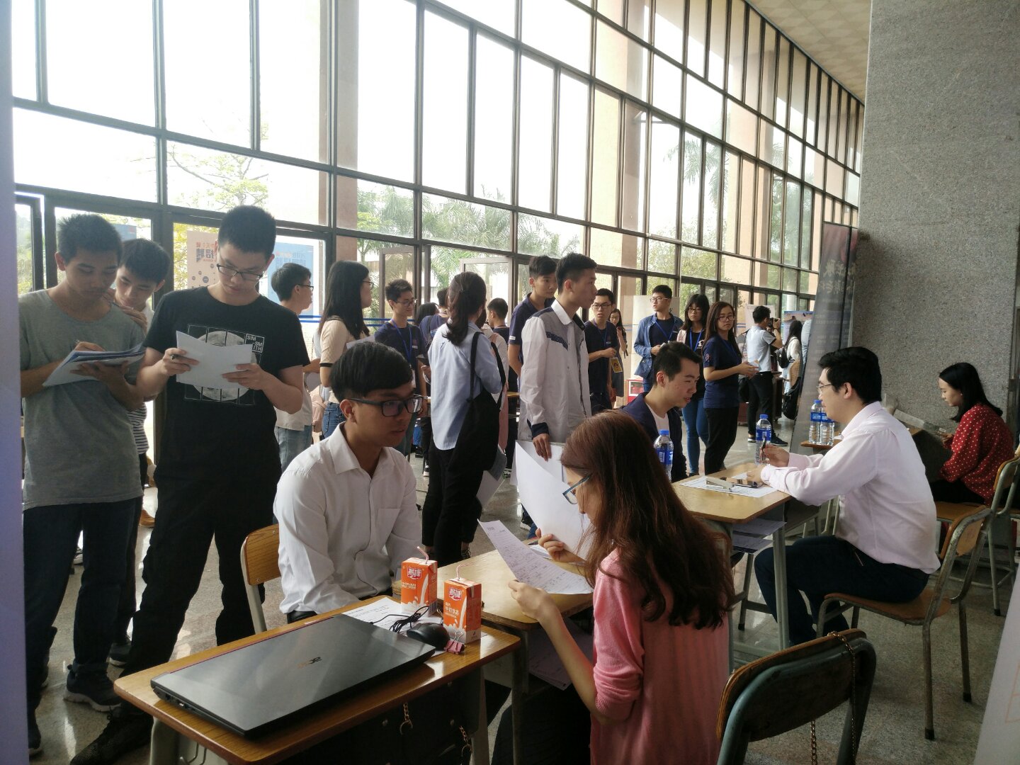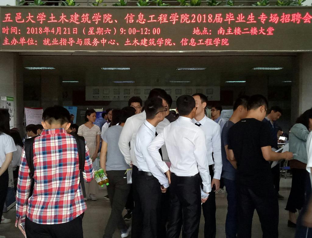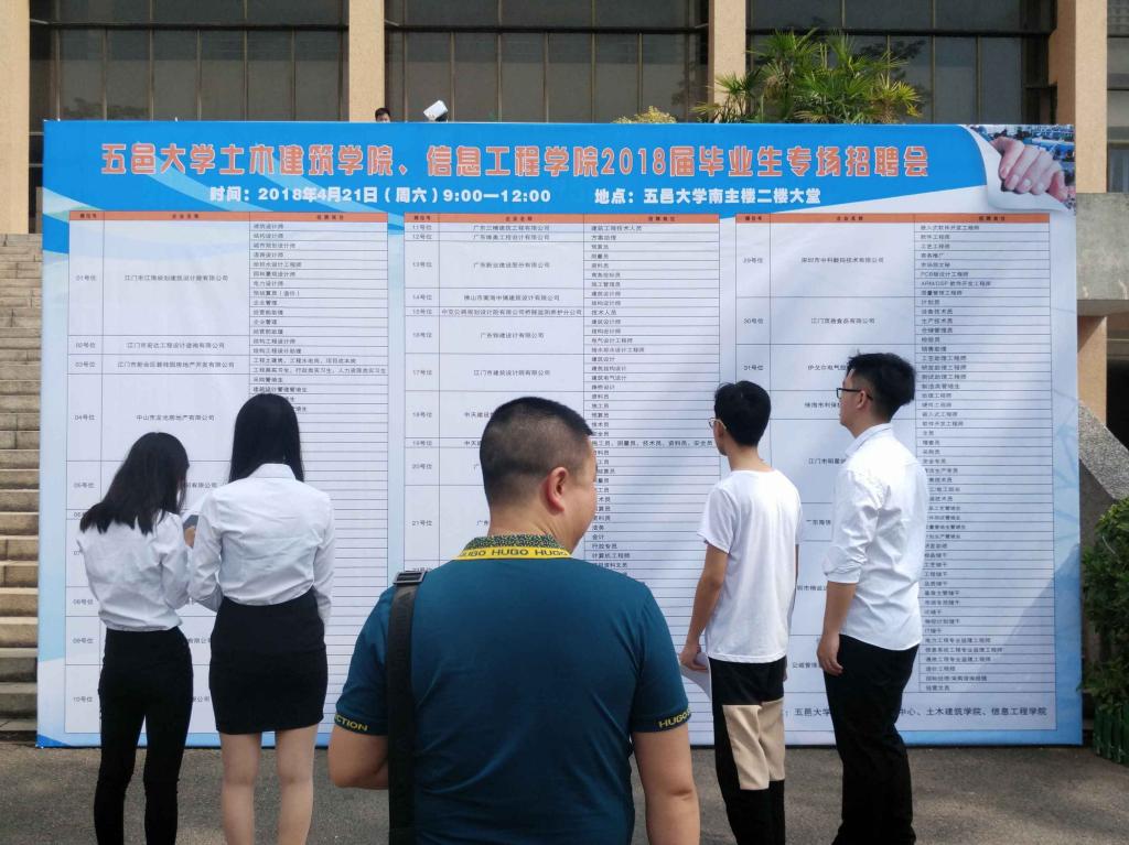 為提高畢業(yè)生的就業(yè)率和就業(yè)質(zhì)量,為企業(yè)輸送優(yōu)秀的人才,4月21日上午,由學校就業(yè)指導與服務中心主辦,土木建筑學院、信息工程學院聯(lián)合承辦的“五邑大學土木建筑學院、信息工程學院2018屆畢業(yè)生專場招聘會”在南主樓二樓大廳順利舉行。信息工程學院輔導員老師申東寧、廖綺婷和土木建筑學院輔導員老師胡偉堅到場與企業(yè)和畢業(yè)生進行了友好交流。