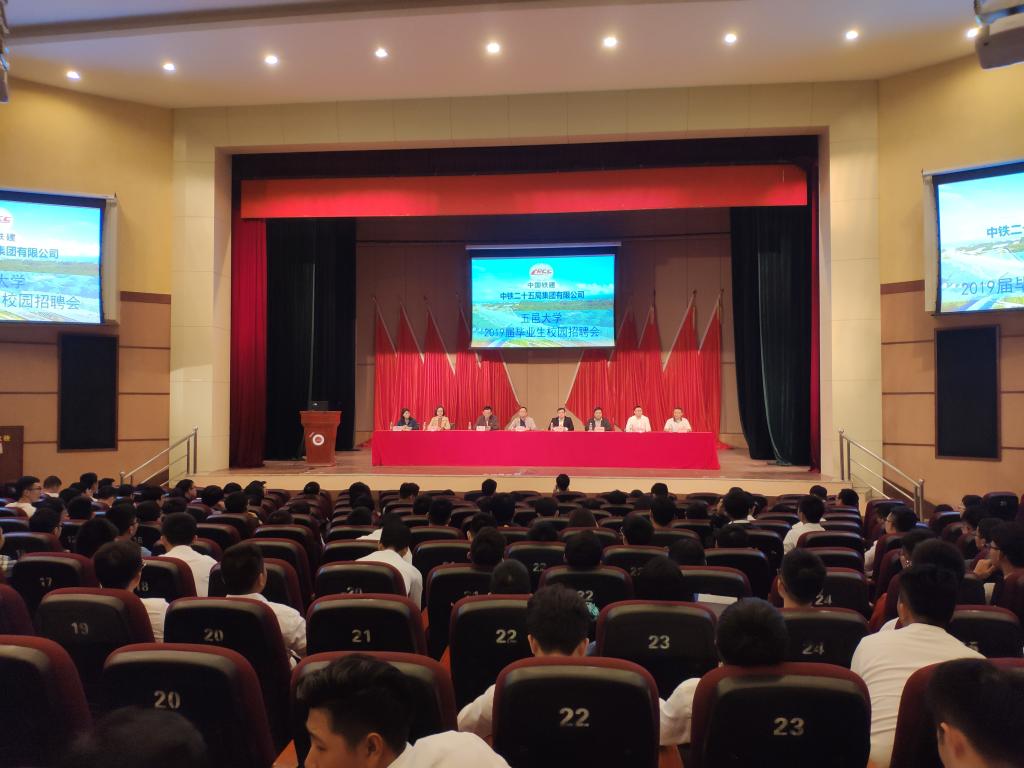 宣講會上,中鐵二十五局集團有限公司首先通過宣傳視頻,讓土木建筑學院2019屆全體畢業生、經濟管理學院部分畢業生等深入了解到集團公司的發展歷史、企業文化等。接著王松副部長對中鐵二十五局的業務分布、薪酬、假期、個人培訓、晉升發展等事宜做了詳細的講解。在互動環節中,李超華副部長親自答疑并熱烈歡迎同學們加入中鐵二十五局集團有限公司。