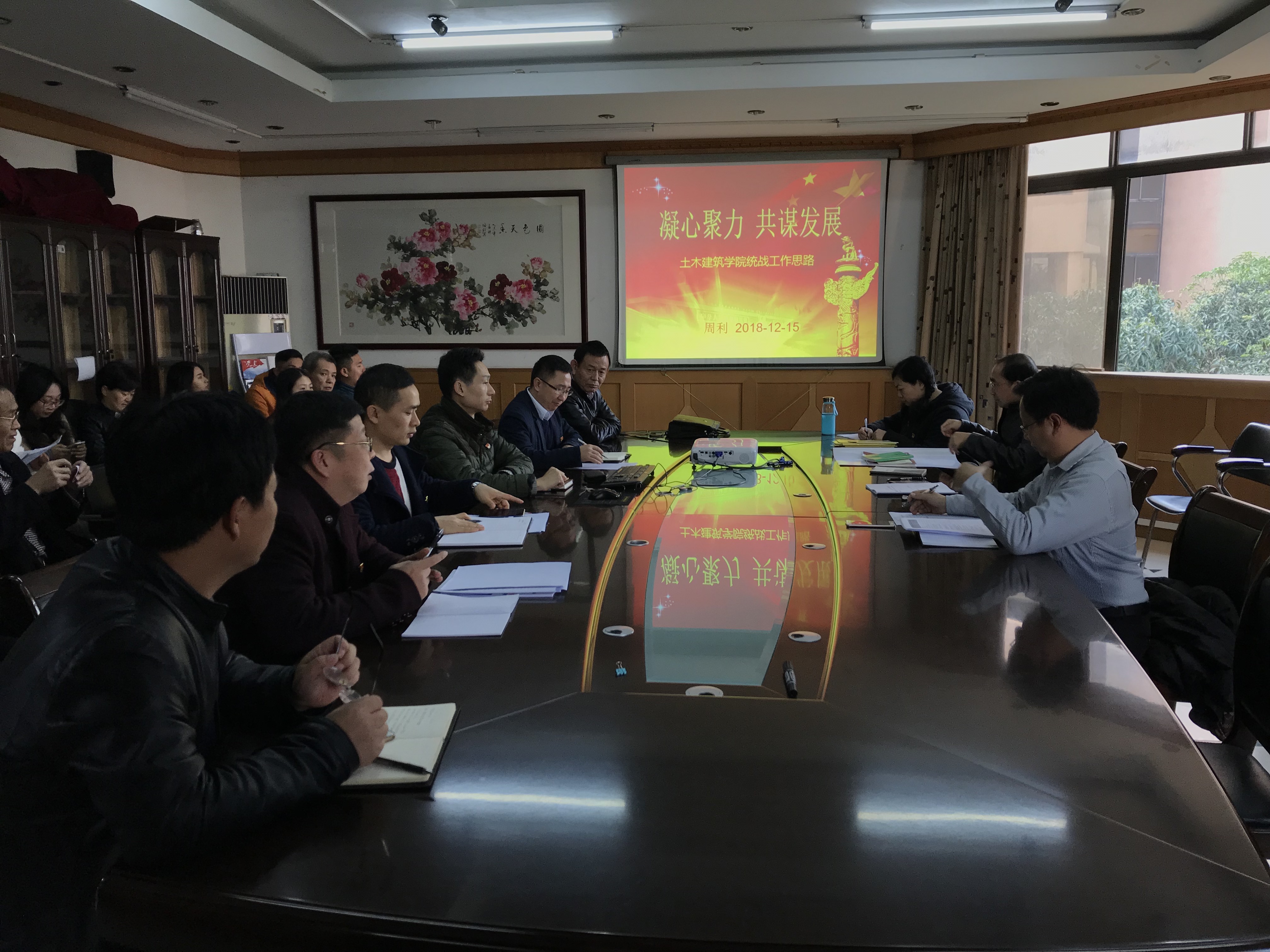 12月18日下午,土木建筑學院在偉倫建筑館308會議室,開展題為“凝心聚力,共謀發展——統戰工作思路”的黨課學習活動。全院全體教職工參加學習活動,院長周利教授主講。