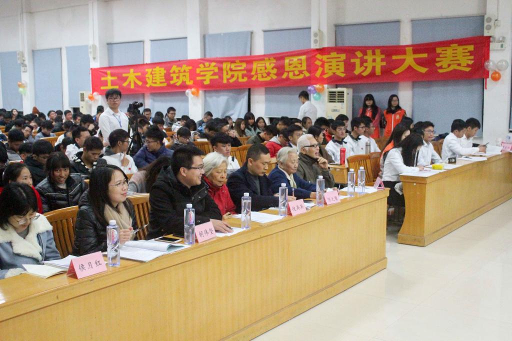 12月12日晚,由土木建筑學(xué)院關(guān)工委、團(tuán)總支部主辦,土木建筑學(xué)院學(xué)生會(huì)、學(xué)生自律委員會(huì)承辦的“懂感恩、勇?lián)?dāng)”主題演講決賽在學(xué)校活動(dòng)中心二樓報(bào)告廳舉行,退休教師陳元馨、宋仁、容西雅,以及學(xué)院副書(shū)記倪兵兵,胡偉堅(jiān)和陳美玲老師出席了本次活動(dòng)并擔(dān)任評(píng)委。2018級(jí)全體同學(xué)參加了本次活動(dòng)。