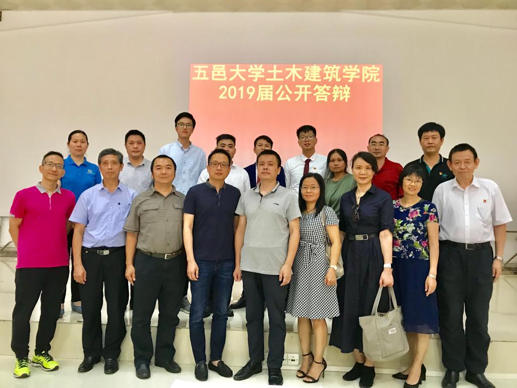 2019年6月4日上午,土木建筑學院在學生活動中心二樓報告廳舉行2019屆本科生公開畢業答辯會。本次答辯會邀請了廣東金輝華集團有限公司副總工陳達華高級工程師,江門市建筑設計院有限公司結構總工陳永祥高級工程師、副總工李小凡高級工程師,中交第一公路勘察設計研究院有限公司珠西分院總工殷旭東高級工程師,廣東千福田工程造價咨詢有限公司總工李卿高級工程師作為本次公開答辯的專家。答辯會由副院長劉紅軍主持,院長周利致詞,學院相關專業教師及2019屆畢業生參加了答辯會。
