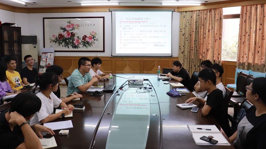 培訓會上,胡偉堅老師主要從學長職責及總體要求,暑假準備工作、具體工作開展、工作注意事項等方面展開講解。結(jié)合工作實際,和具體案例,從學長角色認知、個人技能、學長心態(tài)三個角度,特別強調(diào)了如何做一名合格的新生學長。胡老師指出,學長是學院面對新一屆新生的第一張“名片”,新生對學校、學院的第一印象就來自新生學長。爭做一名合格的學長,一是要清楚自己的角色定位,有責任感、使命感,勇于擔當,積極傳播正能量;二是要積極并及時回應幫助新生適應新環(huán)境,適應大學生生活,做新生的第一引路人。