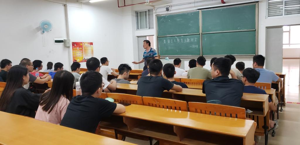 2019年9月25日,院長周利為181008班同學開展愛國主義教育主題班會。會議上學生代表發表自己對愛國主義的理解,周院長勉勵廣大青年應深刻領會學習習近平總書記在紀念五四一百周年會議上講話精神,青春的底色是愛國,土建學生應努力學習掌握本領、建設國家。