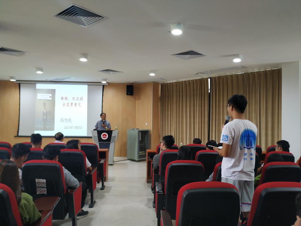 講座上,馮教授介紹了BIM技術(shù)的背景和發(fā)展,分析了BIM技術(shù)目前發(fā)展?fàn)顩r和實(shí)際案例分享,并分享了廣東工業(yè)大學(xué)在BIM的應(yīng)用方面所取得的教學(xué)和科研研究成果。馮為民教授通過自己的工作經(jīng)歷、教學(xué)經(jīng)驗(yàn)和自己豐富的知識背景,借用生動活潑的視頻和事例向與會師生介紹了BIM,使與會師生對BIM產(chǎn)生了濃厚的興趣和更加深入的了解。臺下的學(xué)生認(rèn)真聆聽,并且做好筆記。會后,師生們紛紛與馮教授進(jìn)行了互動交流。(文/圖 土木建筑學(xué)院)