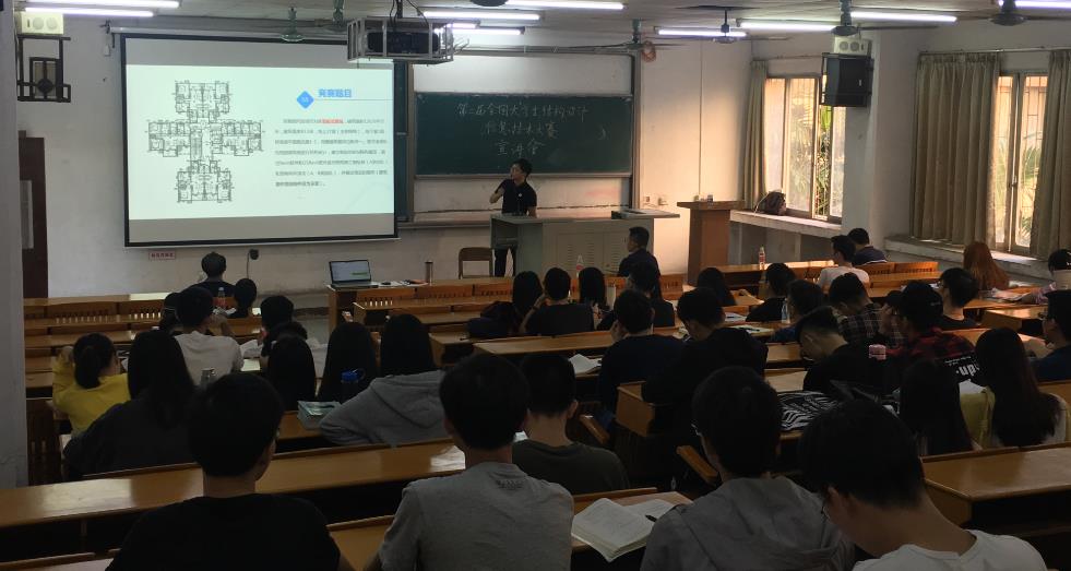 2019年10月29日下午,南主樓201濟濟一堂,五邑大學(xué)土木建筑學(xué)院在此舉辦了“第二屆全國大學(xué)生結(jié)構(gòu)設(shè)計信息技術(shù)大賽宣貫講座”,大賽承辦單位深圳廣廈科技有限公司副總經(jīng)理陳偉對大賽的組織機構(gòu)、參賽形式、比賽內(nèi)容、獎項設(shè)置等進行了詳細講解;同時來自該單位的工程師甘長寧對上一屆“全國大學(xué)生結(jié)構(gòu)設(shè)計信息技術(shù)大賽”比賽情況進行了總結(jié)。