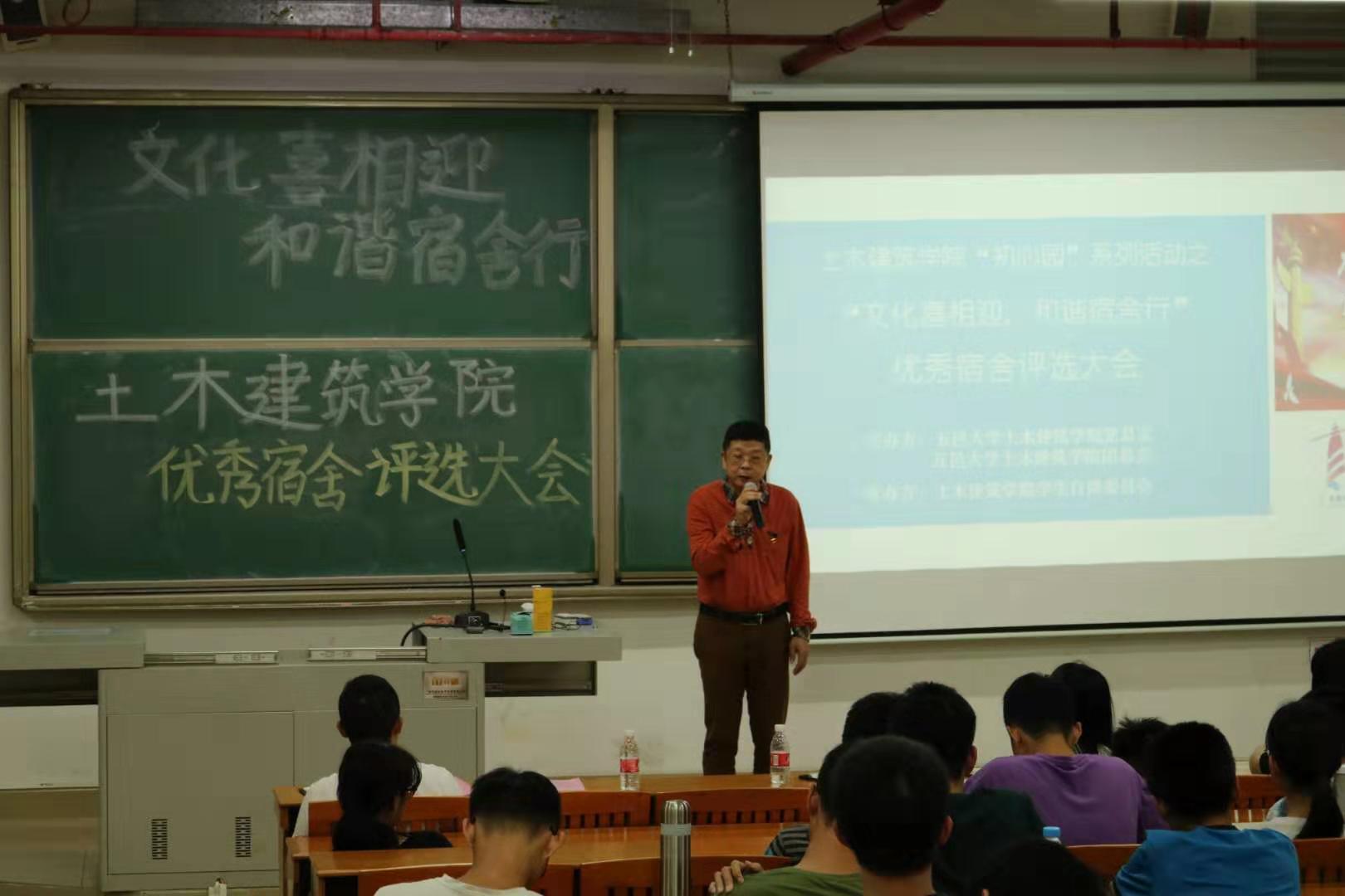 11月5日下午14 :30-16 :30,土木建筑學(xué)院在北主樓504開展2019-2020學(xué)年第一學(xué)期土木建筑學(xué)院優(yōu)秀宿舍評(píng)選活動(dòng)。本次評(píng)選活動(dòng)通過宿舍衛(wèi)生檢查、宿舍風(fēng)采展示共評(píng)選出15間優(yōu)秀宿舍。黨總支吳卓強(qiáng)書記對(duì)獲獎(jiǎng)宿舍表示祝賀,強(qiáng)調(diào)優(yōu)秀宿舍是一種標(biāo)桿、是大家學(xué)習(xí)的榜樣,希望通過豐富的宿舍活動(dòng)引導(dǎo)大家重視宿舍文化建設(shè),努力成為學(xué)風(fēng)優(yōu)良、人際關(guān)系和諧的優(yōu)秀宿舍。