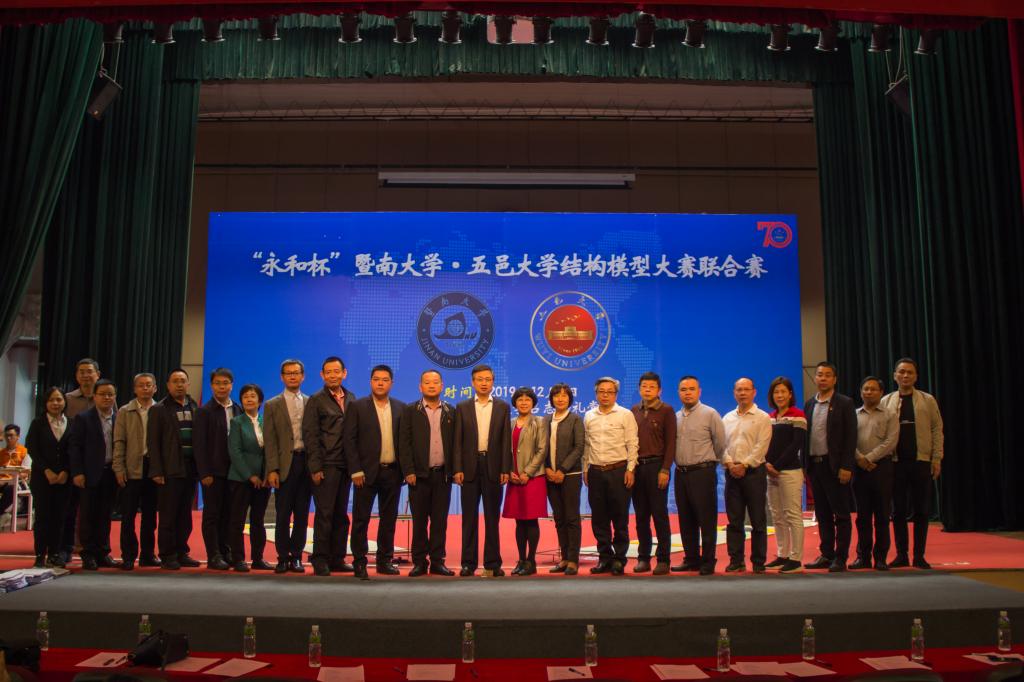 為了積極推進廣東省委組織部和省委教育工委精細部署開展的高校教育人才“組團式”幫扶政策精神,加強兩校的深度交流與合作,加強與灣區(qū)高校的交流與學(xué)習(xí),增強學(xué)生的創(chuàng)新能力,實踐能力和團隊協(xié)作能力,積極營造優(yōu)越的育人環(huán)境和濃郁的學(xué)術(shù)氛圍,大力推進高水平理工科大學(xué)建設(shè)。2019年12月1日,由暨南大學(xué)教務(wù)處、團委、學(xué)生處和五邑大學(xué)教務(wù)處、團委聯(lián)合主辦,五邑大學(xué)土木建筑學(xué)院、暨南大學(xué)力學(xué)與建筑工程學(xué)院承辦,廣東永和建設(shè)集團協(xié)辦的“永和杯”暨南大學(xué)·五邑大學(xué)結(jié)構(gòu)模型大賽聯(lián)合賽在五邑大學(xué)呂志和禮堂順利舉行。暨南大學(xué)副校長張宏、五邑大學(xué)副校長董超俊、五邑大學(xué)校長助理(暨南大學(xué)駐五邑大學(xué)幫扶團隊隊長)李愛梅、永和建設(shè)集團副董事長兼總裁何明理,以及來自暨南大學(xué)和五邑大學(xué)各個部處、學(xué)院的領(lǐng)導(dǎo)老師們,廣東省內(nèi)部分高校的參賽選手和領(lǐng)隊老師們參加了聯(lián)合賽。