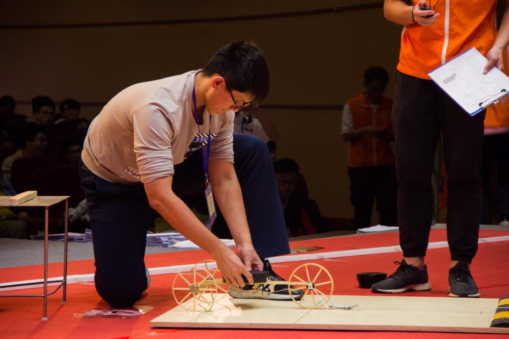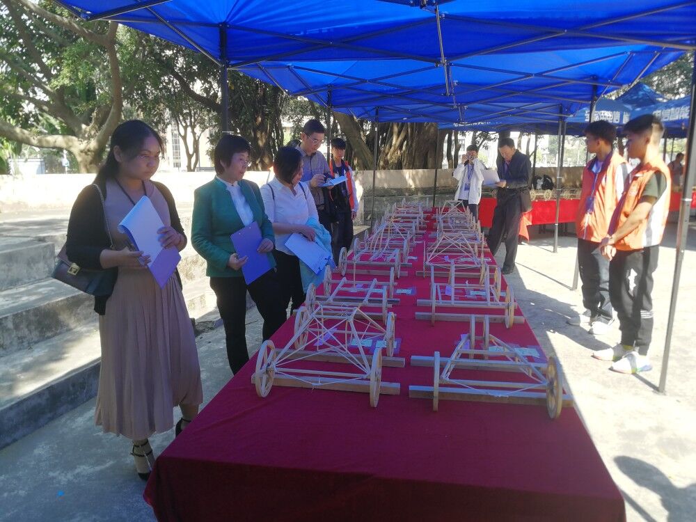 本次大賽除了暨南大學(xué)、五邑大學(xué)的隊伍參賽外,還有來自華南理工大學(xué)、廣東工業(yè)大學(xué)、深圳大學(xué)、廣州大學(xué)、東莞理工學(xué)院、佛山科學(xué)技術(shù)學(xué)院和仲愷農(nóng)業(yè)工程學(xué)院等高校共計35組隊伍參賽,超過100人參賽。大賽賽題為“承重與抗沖擊荷載的汽車結(jié)構(gòu)模型設(shè)計與制作”,用國賽指定的材料竹皮、竹條、502膠水等,設(shè)計與制作車輛模型。大賽評委老師由暨南大學(xué)力學(xué)與建筑工程學(xué)院王璠教授、余嶺教授、歐妍君高級工程師(教授級),東莞理工學(xué)院劉良坤博士,五邑大學(xué)土木建筑學(xué)院院長周利教授、朱久江教授、王敏容博士擔(dān)任。