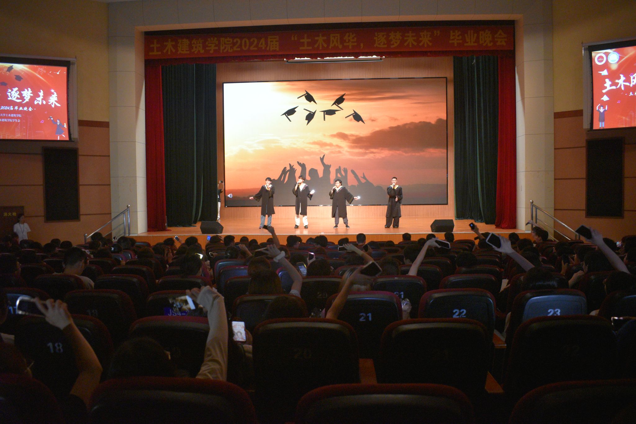 在美輪美奐的燈光與音效中,臺上演員們精心演繹、各展風采,引得現場觀眾歡呼連連、掌聲不斷,本次畢業晚會歡樂祥和、溫馨有愛的氛圍中圓滿結束。愿土木建筑學院全體2024屆畢業生堅定理想信念、厚植家國情懷、胸懷母校溫情、砥礪擔當之志,敢想敢為又善作善成,將青春理想與服務人民、奉獻祖國相結合,在實現中華民族偉大復興的新征程上挺膺擔當、貢獻青春力量。常回母校看看!(文/圖 土木建筑學院)
