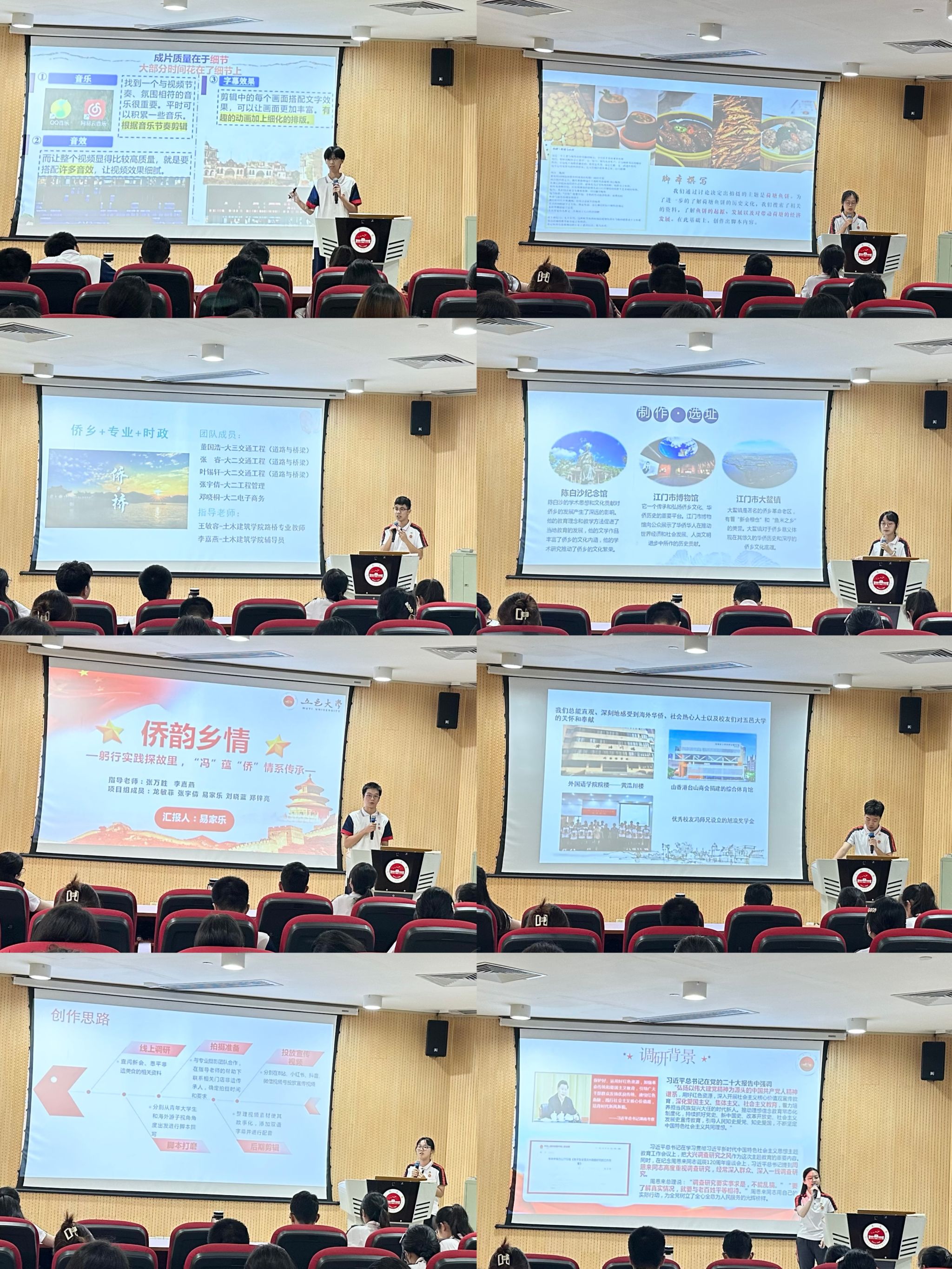 影像記憶,僑鄉足跡,青春印記。分享會上,還現場展播僑鄉文化微視頻優秀作品。各獲獎團隊立足僑鄉特色,通過實戰促學、參觀走訪、潛心打磨、多語宣傳、解封歷史檔案等形式,深入探尋僑鄉歷史脈絡、美食風情、建筑風格、語言特色以及背后感人故事等,創作出富有深度和創意的微視頻作品。