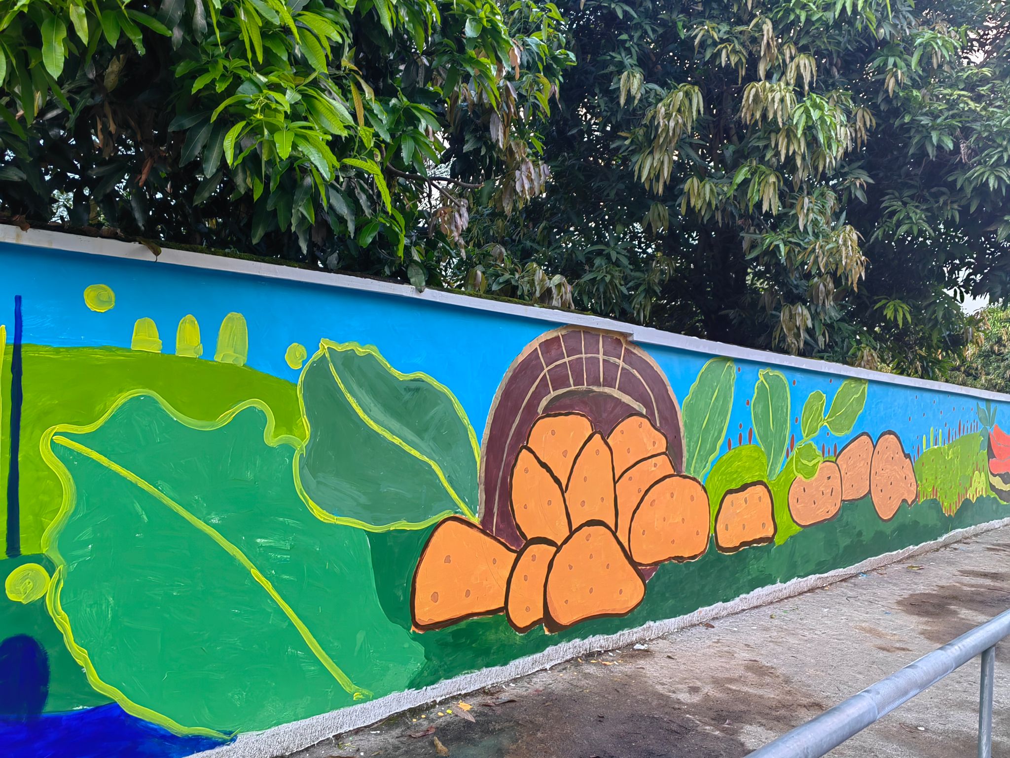 突擊隊成員深入恩平市良西鎮雁鵝村,師生共同開展了美化鄉村墻繪行動。通過精心的設計和繪制,突擊隊完成了8幅長達百米的壯麗畫卷。這些作品不僅融入了良西鎮獨有的“四薯”文化元素,還巧妙地捕捉了鄉村的淳樸風情與濃厚鄉土氣息,體現了對這片土地深深的熱愛與敬意。