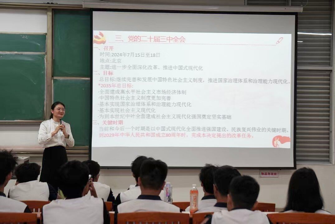 隨后,李嘉燕老師以“學(xué)習(xí)貫徹黨的二十屆三中全會(huì)精神”為題,給青馬學(xué)員講授微團(tuán)課。她以歷史上重要的三中全會(huì)為切入,為青馬學(xué)員們解讀了進(jìn)一步全面深化改革、推進(jìn)中國式現(xiàn)代化的總體框架與深遠(yuǎn)意義。她通過深入的原文研讀和理論剖析,帶領(lǐng)同學(xué)們領(lǐng)會(huì)了黨的二十屆三中全會(huì)的精神實(shí)質(zhì)。