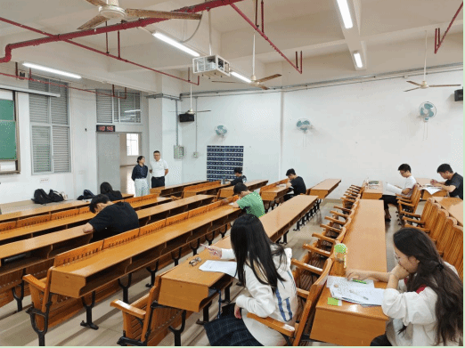 比賽過程中,土木建筑學(xué)院黨委書記許皓、教學(xué)副院長(zhǎng)王敏容、王小蔚及李嘉燕老師等來到現(xiàn)場(chǎng)巡查。考場(chǎng)秩序井然,工作人員認(rèn)真堅(jiān)守崗位,盡職盡責(zé);參賽選手嚴(yán)格遵守考場(chǎng)規(guī)定、競(jìng)爭(zhēng)態(tài)度端正,展現(xiàn)了過硬的理論功底和良好的精神風(fēng)貌。