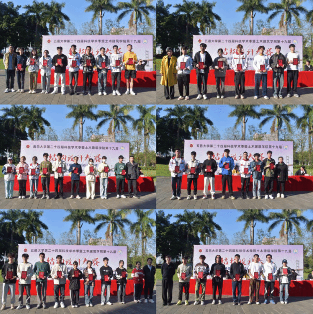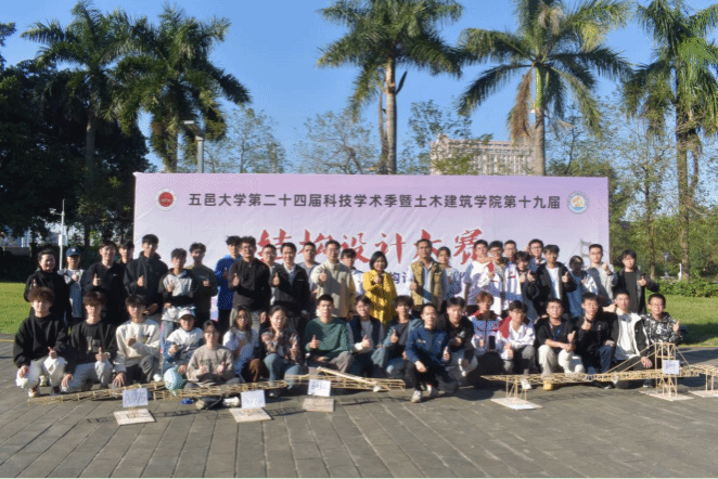 為繁榮校園團(tuán)隊(duì)協(xié)作、自信自強(qiáng)、踔厲奮發(fā)的學(xué)術(shù)科技文化,培養(yǎng)大學(xué)生的工程結(jié)構(gòu)創(chuàng)新設(shè)計(jì)與動(dòng)手實(shí)踐能力,強(qiáng)化現(xiàn)代化建設(shè)人才支撐的守正創(chuàng)新精神,2024年11月30日,由共青團(tuán)五邑大學(xué)委員會(huì)、五邑大學(xué)學(xué)生會(huì)主辦,土木建筑學(xué)院學(xué)生會(huì)、五邑大學(xué)結(jié)構(gòu)設(shè)計(jì)協(xié)會(huì)承辦的五邑大學(xué)第二十四屆科技學(xué)術(shù)季暨土木建筑學(xué)院第十九屆結(jié)構(gòu)設(shè)計(jì)大賽在學(xué)生綜合服務(wù)中心一樓廣場(chǎng)成功舉行。土木建筑學(xué)院黨委書(shū)記許皓、院長(zhǎng)曾暉、副院長(zhǎng)張萬(wàn)勝、副院長(zhǎng)王敏容以及各系主任、班導(dǎo)師、輔導(dǎo)員出席本次活動(dòng)。本次大賽的評(píng)委老師有:陳孔亮、王小蔚、盧盛燦、張炯、涂崇志、張恒。