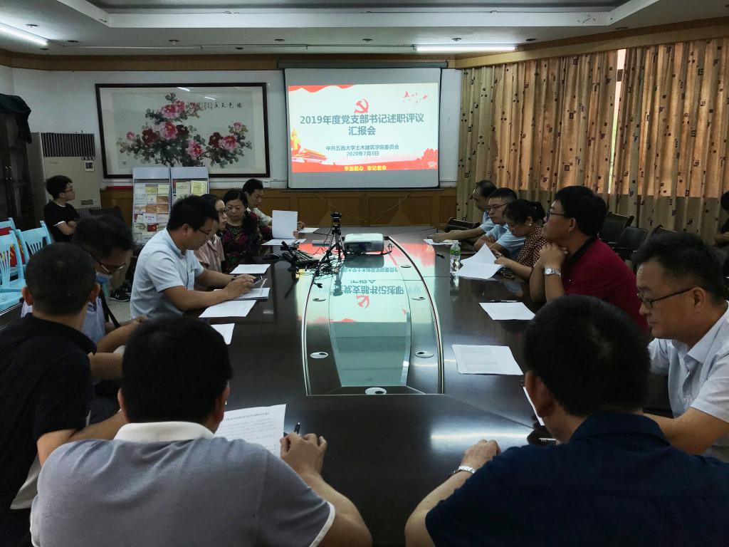 不忘初心,牢記使命。根據學校黨委《關于開展2019年度基層黨支部書記述職評議考核工作的通知》的精神要求,土木建筑學院黨委于7月3日上午在偉倫建筑館308會議室開展基層黨支部書記2019年度述職評議考核會。學院黨委書記、副書記、黨支部書記及支委、黨員教師代表及群眾教師代表等24人參會,會議由學院黨委書記吳卓強同志主持。