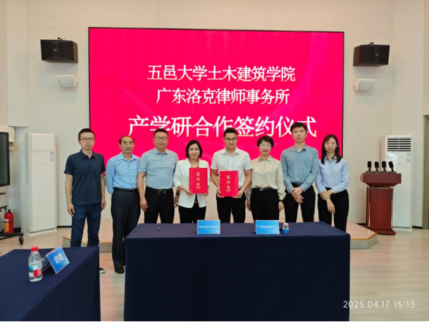 2025年4月17日,土木建筑學院與廣東洛克律師事務所舉行了產學研合作協議簽約儀式。學院黨委書記許皓、院長曾暉、工程管理系主任曾慶響、副主任李俊、輔導員夏夢雪出席了活動。