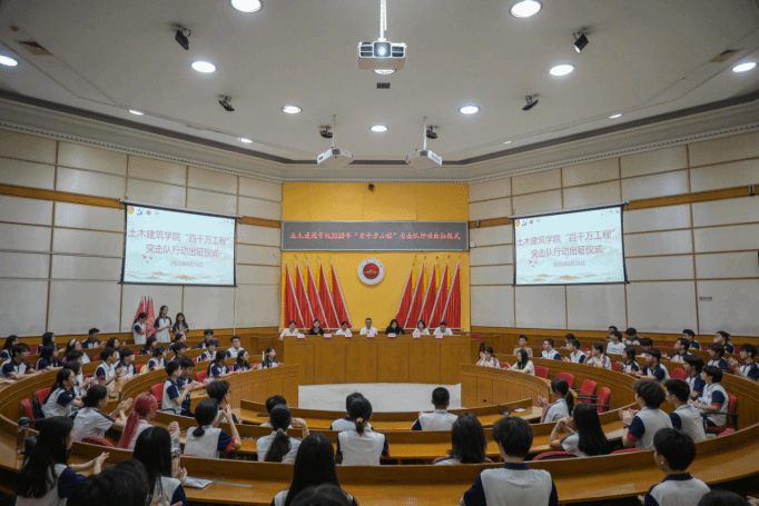 2025年6月24日,土木建筑學院在十友樓二樓國際會議廳隆重舉行2025年“百千萬工程”突擊隊行動出征儀式。學院黨委書記許皓、院長曾暉、副院長王敏容、輔導員、學生代表等200余名參加。院團委副書記李嘉燕主持儀式。