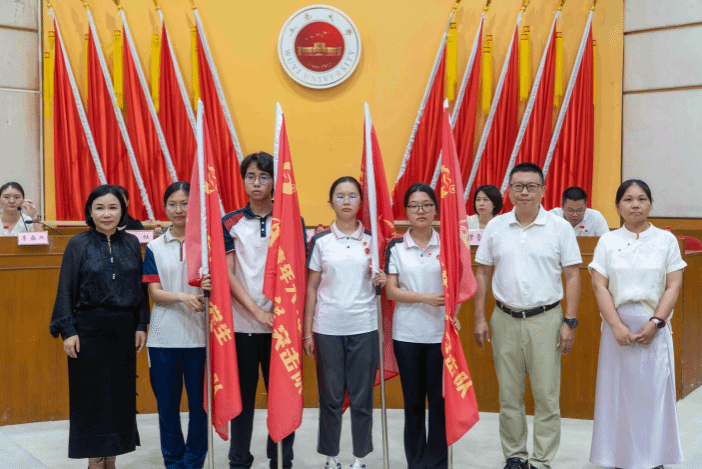 在莊重的授旗儀式上,許皓書記、曾暉院長、王敏容副院長分別為2025年“百千萬工程”突擊隊代表授旗。僑·橋實踐團隊長張睿代表全體隊員莊嚴宣誓,承諾將用實際行動踐行青春誓言,為鄉村振興貢獻智慧和力量。