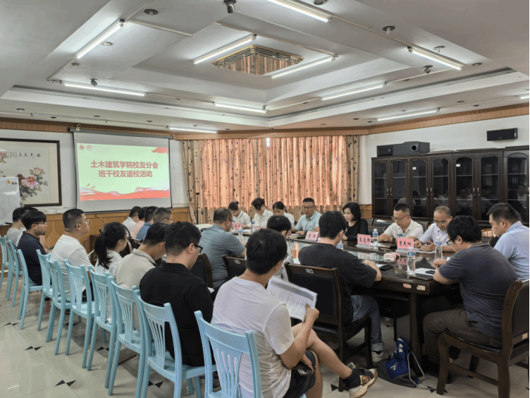 2025年6月28日,土木建筑學院校友分會班干校友返?;顒釉趯W院308隆重舉行。學院黨委書記許皓、院長曾暉、副院長王敏容及教師代表與來自各地的班干校友歡聚一堂,共敘師生情誼,共話學院發展。