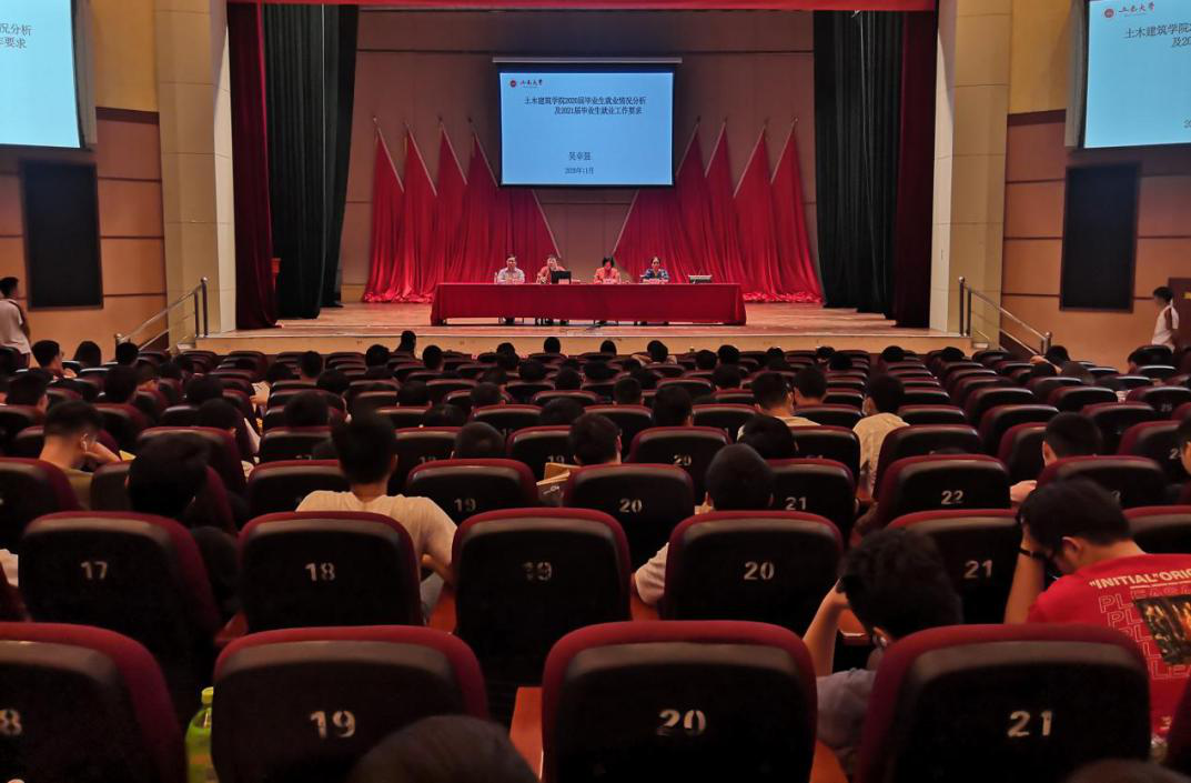 為引導(dǎo)學(xué)生樹立正確的擇業(yè)觀,進(jìn)一步做好2021屆畢業(yè)生就業(yè)服務(wù)工作。11月1日下午,土木建筑學(xué)院在呂志和禮堂舉行了2021屆畢業(yè)生就業(yè)動(dòng)員大會(huì)。學(xué)院在校領(lǐng)導(dǎo)班子成員、畢業(yè)班導(dǎo)師代表、輔導(dǎo)員,以及2021屆全體畢業(yè)生參加了本次大會(huì)。會(huì)議由學(xué)院輔導(dǎo)員夏夢(mèng)雪主持。
