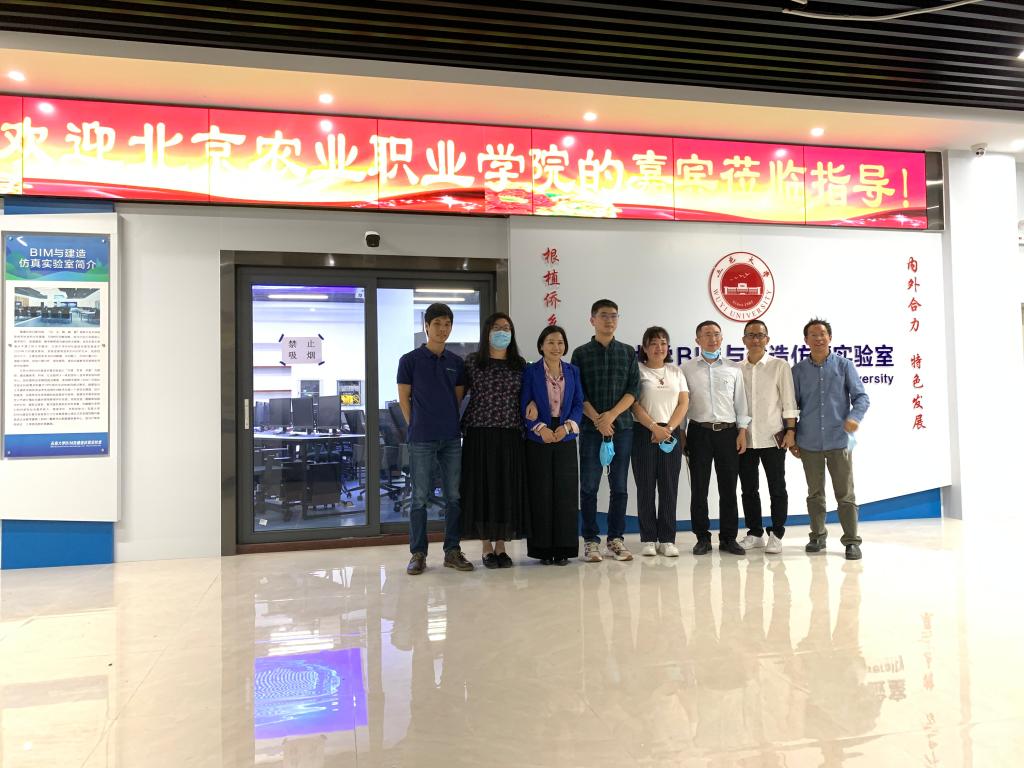 2020年11月4日上午,北京農(nóng)業(yè)職業(yè)學院水利與建筑工程系建筑裝飾專業(yè)副主任李鳳偉一行3人來我院參觀BIM與建造仿真實驗室,我院曾暉院長、聶振華副院長及相關(guān)的老師進行了接洽。