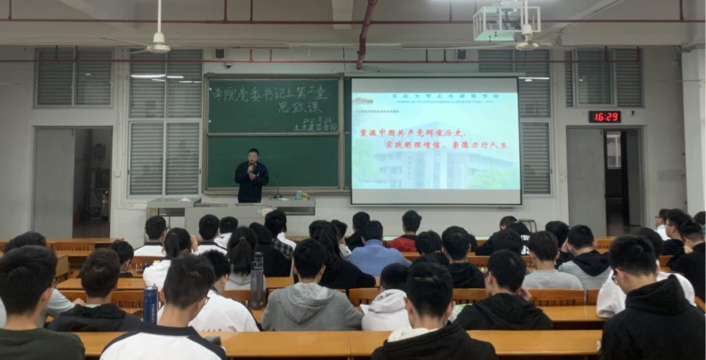 為深入貫徹中辦、國辦印發(fā)的《關(guān)于深化新時代學(xué)校思想政治理論課改革創(chuàng)新的若干意見》文件精神,推動落實學(xué)校黨組織書記、校長思政課建設(shè)“第一責(zé)任人”責(zé)任,根據(jù)《廣東省教育廳關(guān)于做好2021年春季學(xué)期高校黨委書記、校長和院(系)黨組織書記、院長(系主任)及中小學(xué)黨組織書記、校長上第一堂思政課工作的通知》要求,2021年3月23日、26日下午,于北主樓205,土木建筑學(xué)院黨委書記吳卓強(qiáng)、副院長(主持工作)曾暉分別給2020級學(xué)生講授2021年春季學(xué)期第一堂思政課。