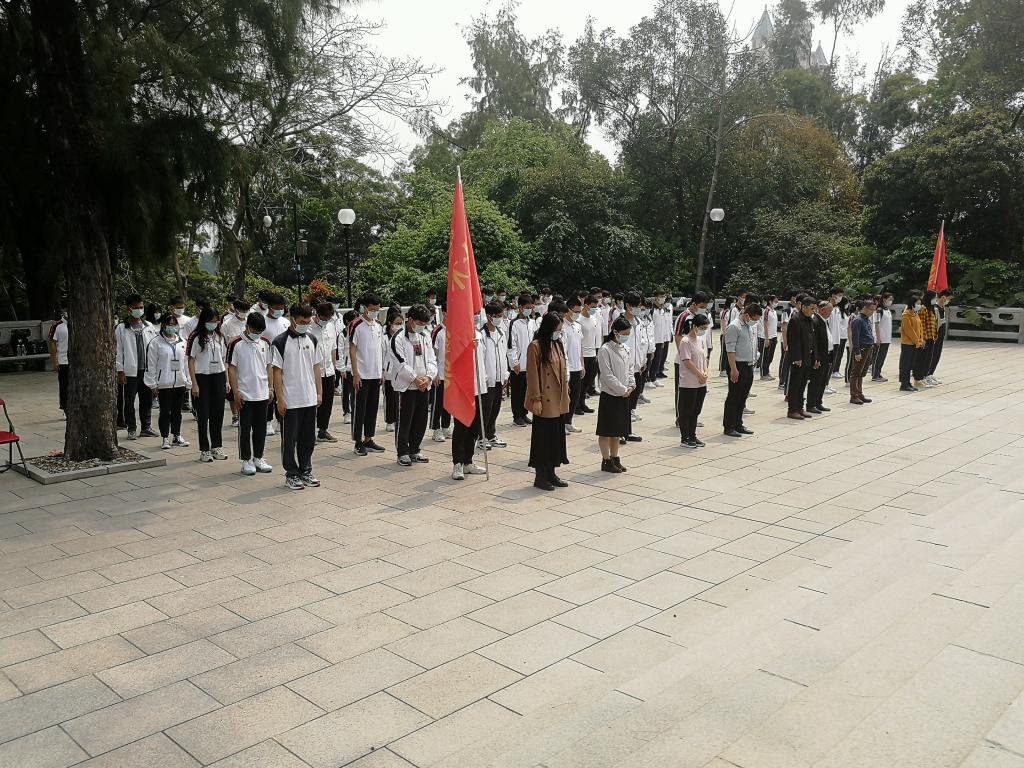 活動伊始,全體人員奏唱國歌并默哀3分鐘,表達對革命先烈的崇高敬意。隨后,關福漢老師在“人民英雄永垂不朽”紀念碑前為到場師生講黨課。關老師講述大革命時期中國共產黨革命歷史,帶領同學們深刻領悟了無產階級政黨先進性汲取知識和力量,同時勉勵廣大學子堅定共產主義信仰、樹立遠大理想,學會做人、做事,發揚“牛”的精神為實現中華民族的偉大復興而不懈努力。學生代表發言向全體師生提出倡議學習英雄事跡,爭做有理想、有文化、有紀律的新時代勇立潮頭、聽黨話、跟黨走的可靠接班人。最后,師生一一上前為革命英烈獻花,將哀思與敬意獻給革命先烈。